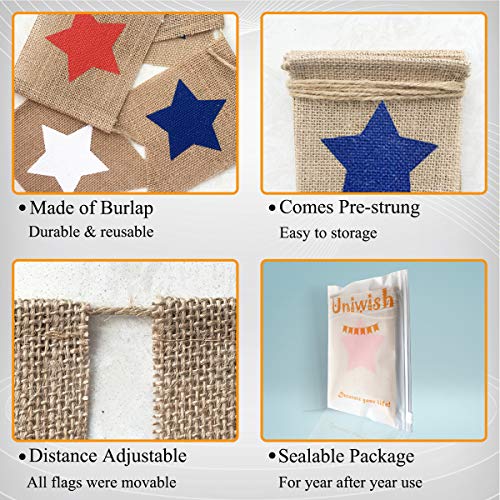 Uniwish Red White and Blue Stars Banner, Patriotic 4th of July Decorations American Independence Day Garden Flag Garland Burlap Bunting Sign