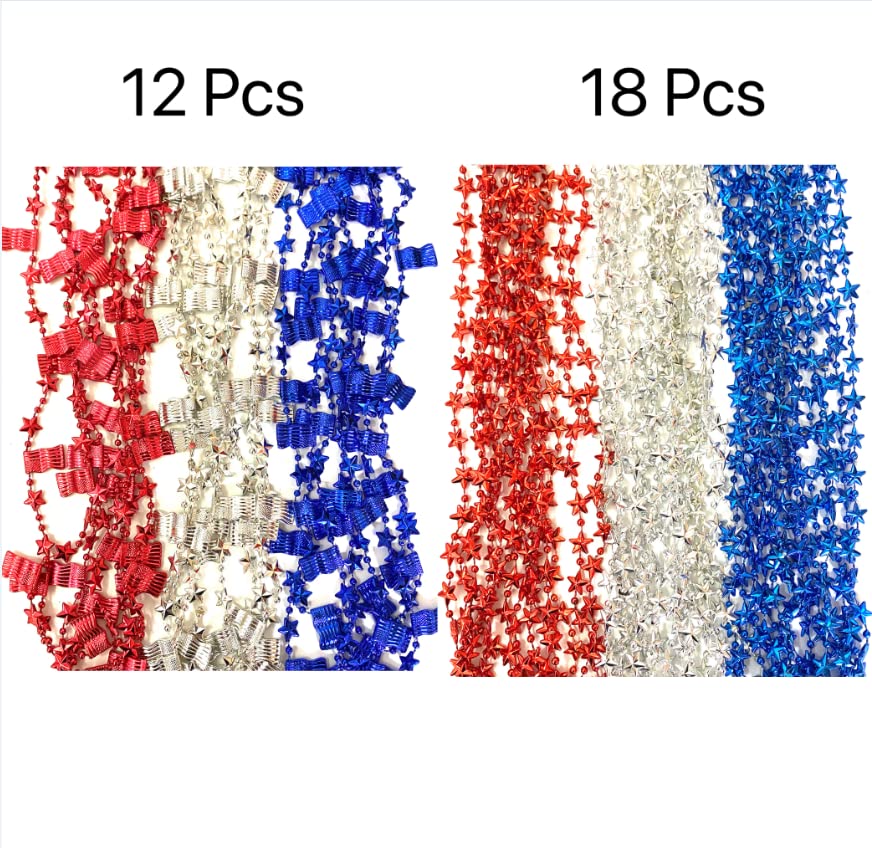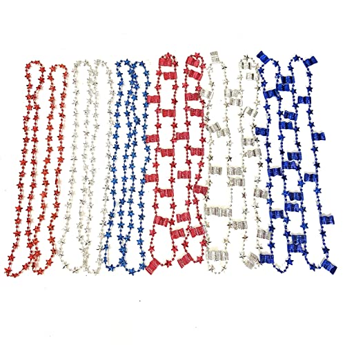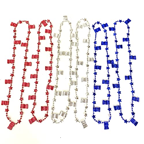 Party Necklaces Size: Includes 18 five-pointed star bead necklace and 12 flag bead necklace, length 32″. Unique design style.