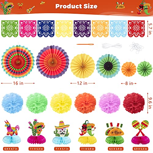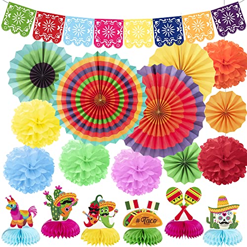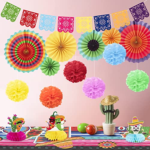 26PCS Cinco De Mayo Party Decorations, Fiesta Party Decorations Fiesta Banner Honeycomb Table Centerpieces Mexican Paper Fans Paper Poms for Birthday Decor Cinco De Mayo Fiesta Party Supplies