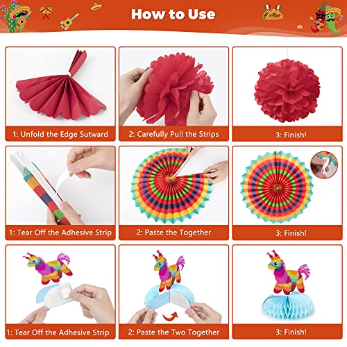 Specification: 26PCS Cinco De Mayo Party Decorations, Fiesta Party Decorations Fiesta Banner Honeycomb Table Centerpieces Mexican Paper Fans Paper Poms for Birthday Decor Cinco De Mayo Fiesta Party Supplies