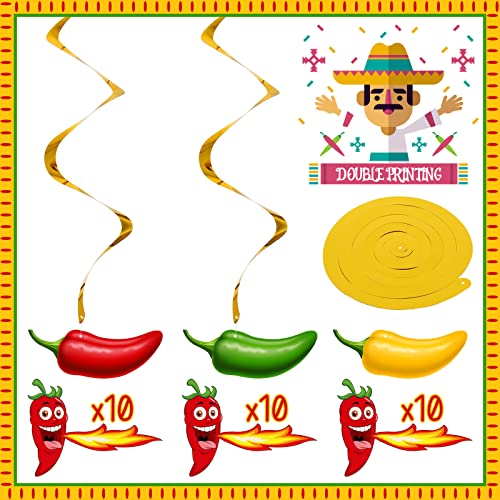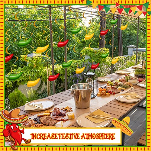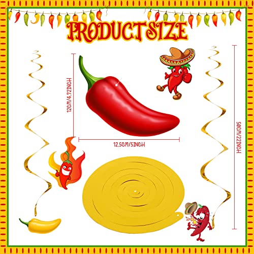 Specification: 30 Pieces Chili Pepper Whirls Cinco de Mayo Pepper Decorations for Fiesta Party Mexico Spiral Hanging Party Streamers for Decor Mexican Party Accessories (Red, Yellow, Green)