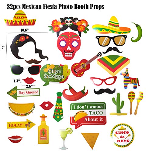 Specification: 32 pcs Fiesta Mexican Photo Booth Props,Cinco De Mayo Mexican Fiesta Party Decoration Supplies, Fiesta Table Decorations,Fiesta Photo Prop Decorations for Mexican Photo Props Decorations Party Favor