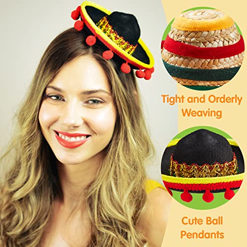 JOYIN 6 PCS Cinco De Mayo Fiesta Fabric and Straw Sombrero Headbands Party Costume for Fun Fiesta Hat Party Supplies, Mexican Theme Decorations, Luau Event Photo Props and Party Favors