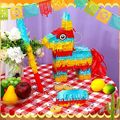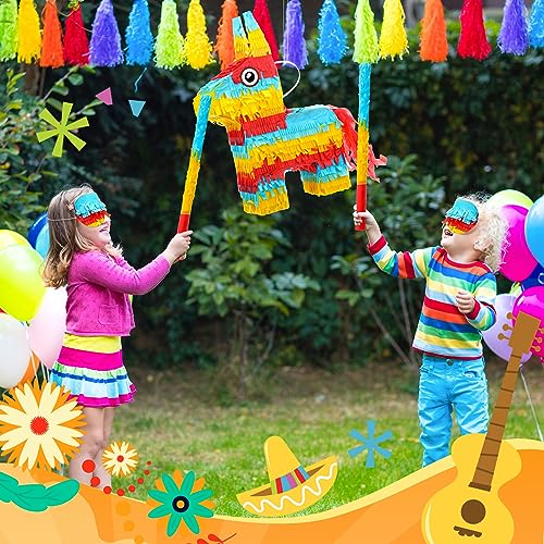 Lenwen Donkey Pinata 16 x 10 x 3 Inch Fiesta Donkey Pinata Bundle with Stick Blindfold and Confetti Mexican Pinata Rainbow Donkey Pinata for Kids Birthday, Cinco De Mayo Fiestas Party Favors Decor