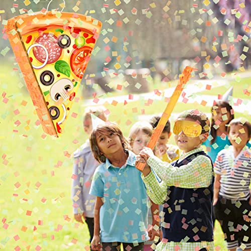 Pizza Pinata Mexican Pinata Party Favor Includes Stick Blindfold Bat and Confetti Pizza Pinata for Birthday Party Cinco De Mayo Pinata Decor for Mexican Themed Party Supplies, 16.1 x 13 x 3.2 Inches