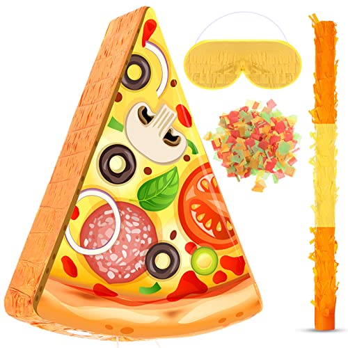 Specification: Pizza Pinata Mexican Pinata Party Favor Includes Stick Blindfold Bat and Confetti Pizza Pinata for Birthday Party Cinco De Mayo Pinata Decor for Mexican Themed Party Supplies, 16.1 x 13 x 3.2 Inches