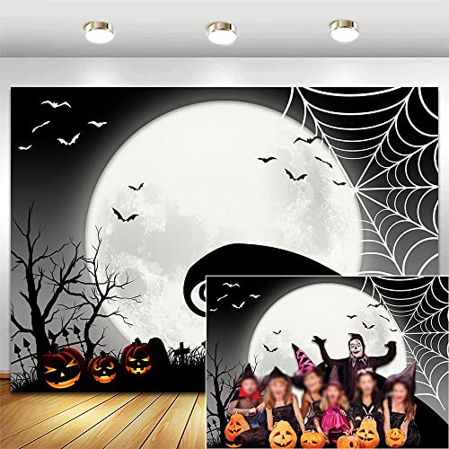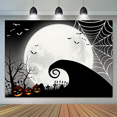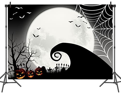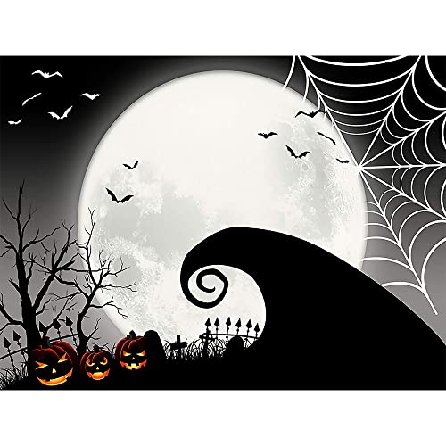 8x6ft Halloween Pumpkin Full Moon Photo Background for Nightmare Themed Party Decoration Photography Backdrop Baby Shower Birthday Photo Booth Props