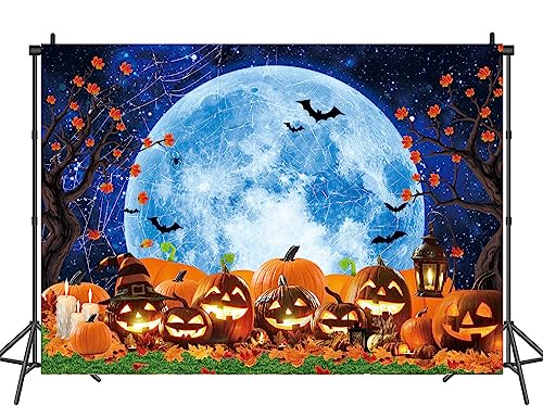 Halloween Backdrop for Photography 7x5FT Halloween Full Moon Night Background Horrible Pumpkin Lantern Maple Leaf Halloween Theme Baby Shower Birthday Party Decoration Photo Booth Props