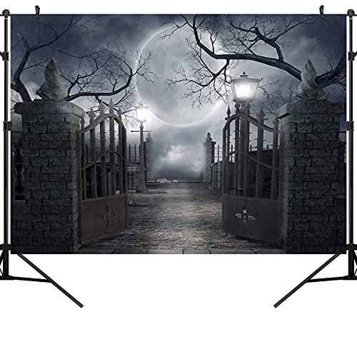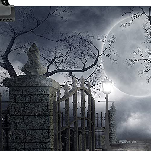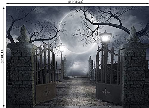 Specification: OUYIDA Halloween Night Full Moon Backdrop Gloomy Woods Graveyard Photography Background Horrible Cemetery Spooky Party Banner Halloween Party Decoration Photo Booth Props 5X3FT TP17E