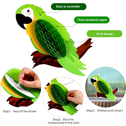 Easy to use and great for party decoration: these parrot paper cutouts are wonderful for tropical parties, summer luaus, hawaiian themed parties; Using them as decorations in your party will add more colorful and tropical elements for your party; And our parrot honeycombs are pre-strung with ropes, you just need to hang them over, very convenient and easy to use