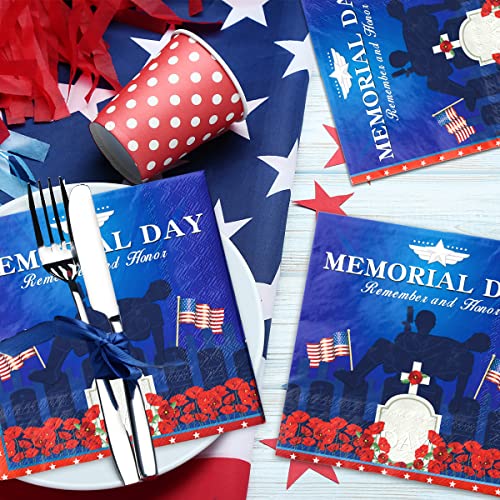Specification: 40Pcs Memorial Day Napkins,Memorial Day Decorations Patriotic Soldiers Theme Paper Napkins Disposable US Flag Lunch Napkins for Honor Patriotic Veterans Day Party