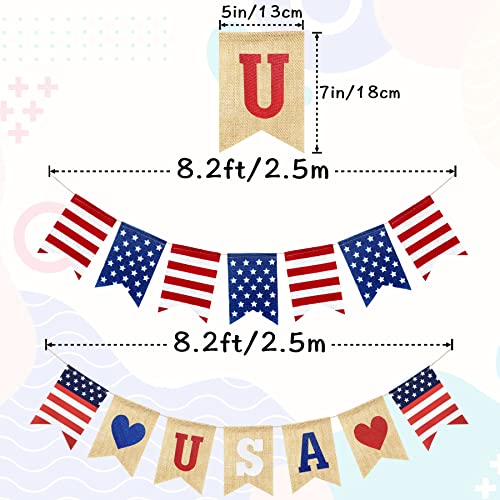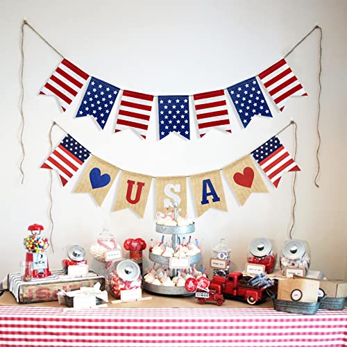 VILIFEVER 2Pcs USA Banner Burlap American Flag Bunting Banner, 4th of July Decorations for Mantle Fireplace Memorial Day Independence Day Party Decor Supplies