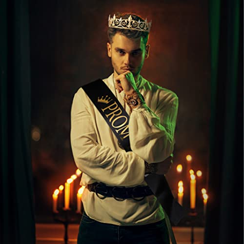 Specification: Lyrow 4 Pcs Prom Crowns and Sashes Set Halloween Prom King and Queen Tiara with Sash Birthday Party Graduation Accessories(Gold, Black)