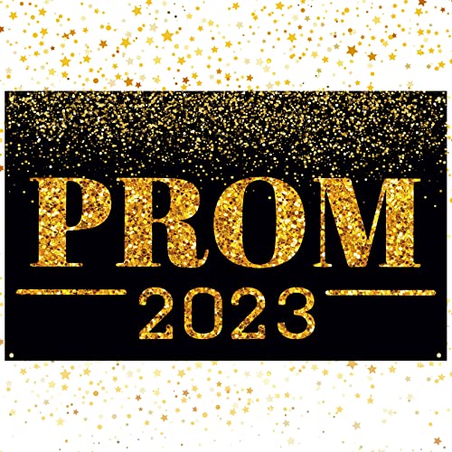 Specification: Prom 2023 Banner Graduation Prom Party Decorations Supplies Large Congrats Banner Photo Backdrop Graduation Prom Banner Hanging (Black, Gold)