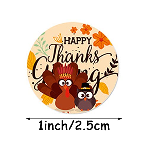 500 Pcs Thanksgiving Stickers Roll,1 Inch 8 Designs Happy Thanksgiving Turkey Theme Sticker for Thanksgiving Party Favors Supplies Envelope Seals Gift Card Gift Box Decoration