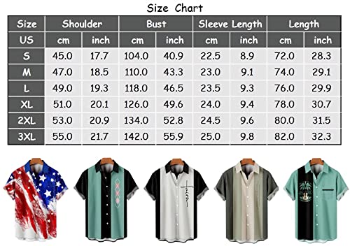 Men’s Short Sleeve Button Down Bowling Shirts Hawaiian Casual Printed Summer Regular Fit Beach Aloha Shirt