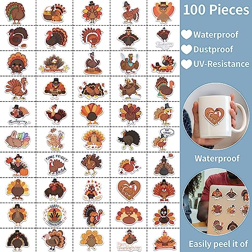 Thanksgiving Fall Stickers 100 Pcs Cute Vinyl Water Bottles Stickers Waterproof Laptop Stickers Crafts Funny Fall Turkey Leaf Stickers for Kids Teens Adults